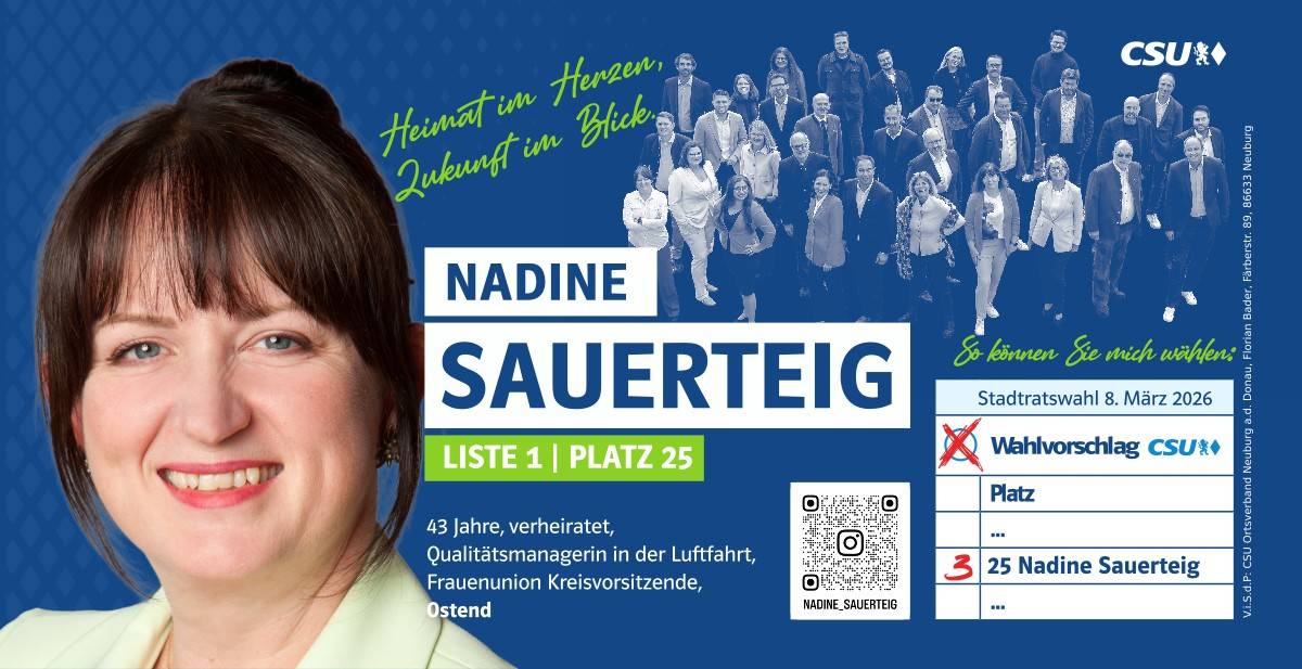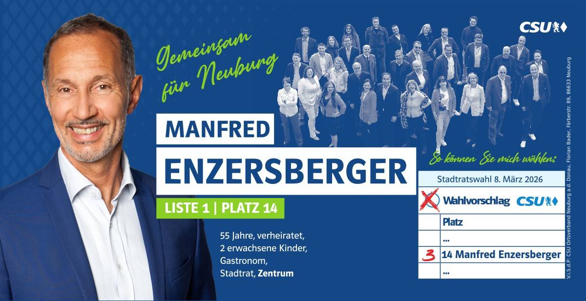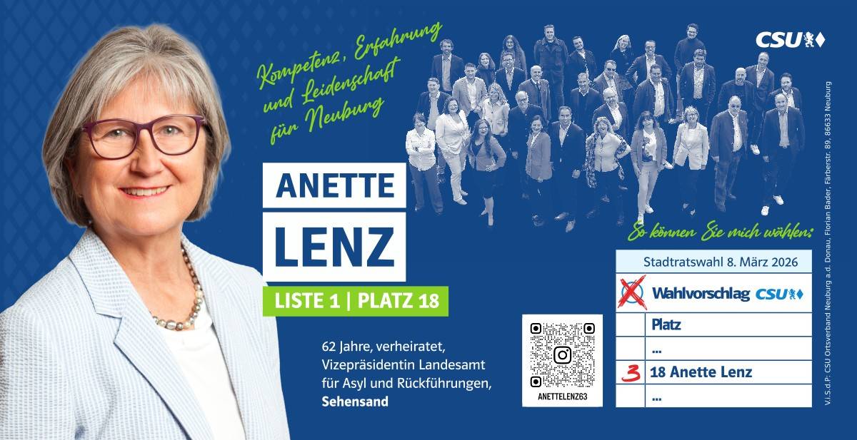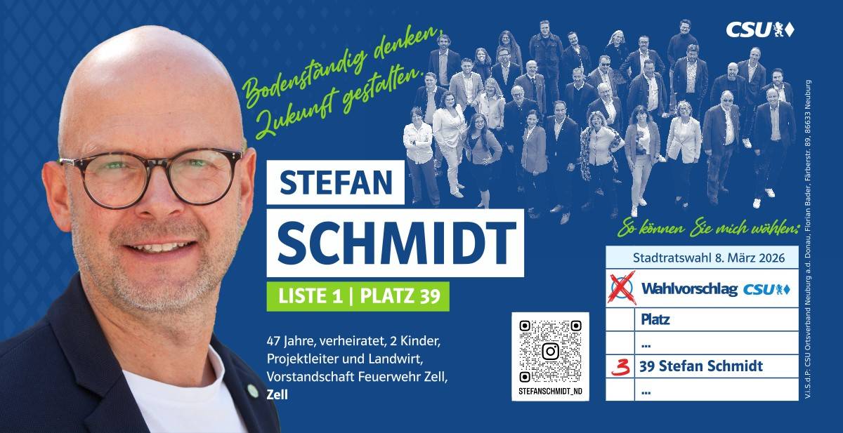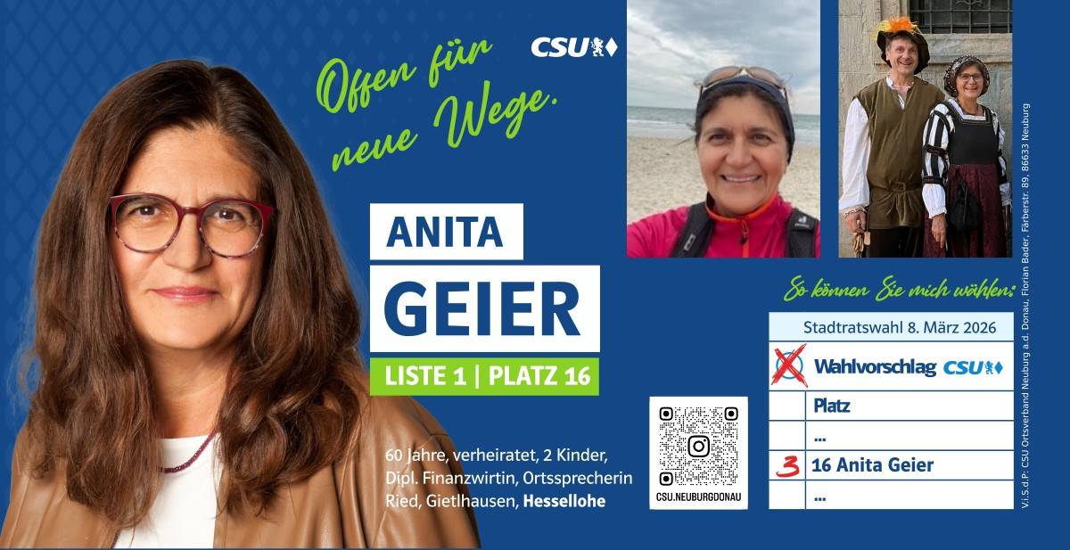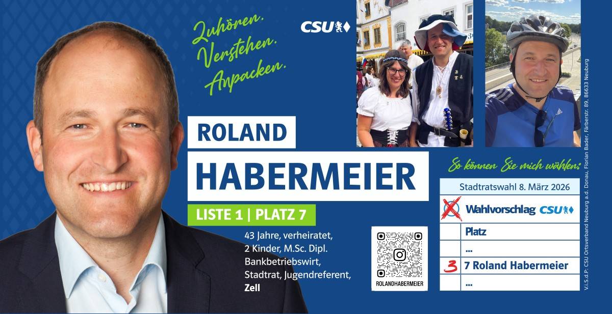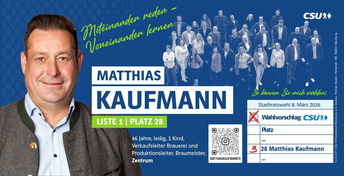 Ehrlich, innovativ und offen für die Chancen der Zukunft – das ist mein persönlicher Weg. Und diesen möchte ich mit allen Neuburgerinnen und Neuburgern gehen. Da gutes Miteinander beim Zuhören beginnt, biete ich Ihnen immer ein offenes Ohr an. Lassen Sie uns sprechen!