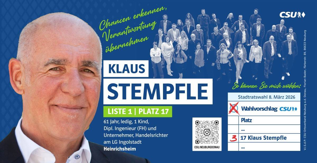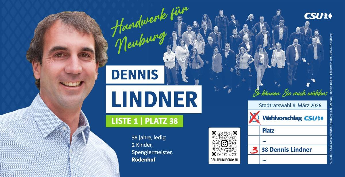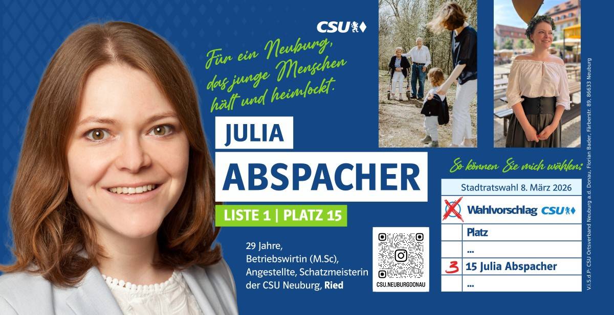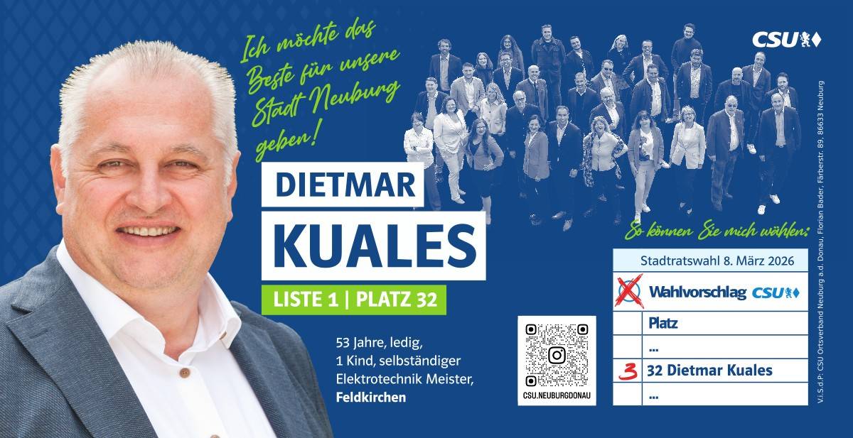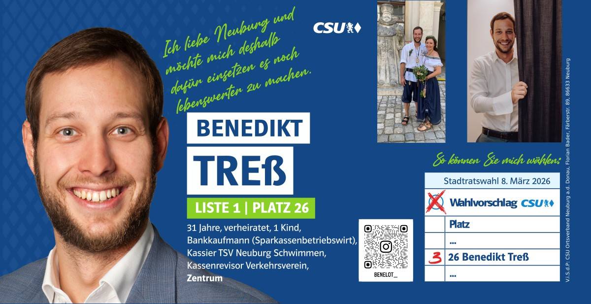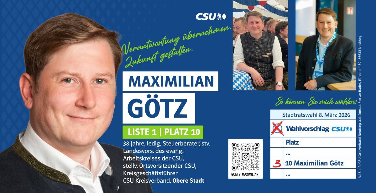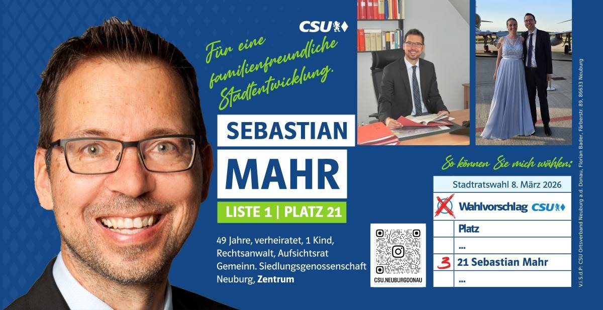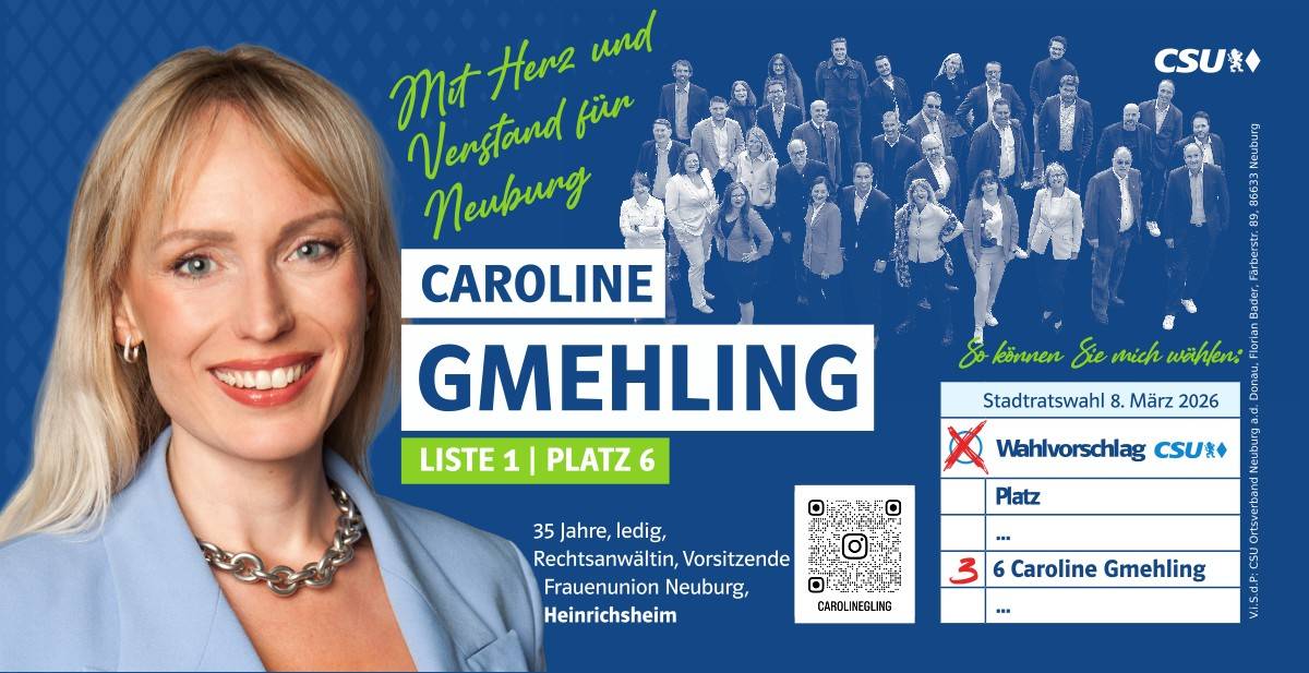 Ehrlich, innovativ und offen für die Chancen der Zukunft – das ist mein persönlicher Weg. Und diesen möchte ich mit allen Neuburgerinnen und Neuburgern gehen. Da gutes Miteinander beim Zuhören beginnt, biete ich Ihnen immer ein offenes Ohr an. Lassen Sie uns sprechen!