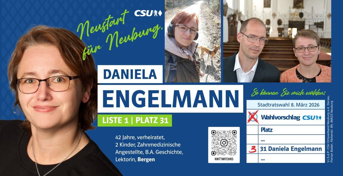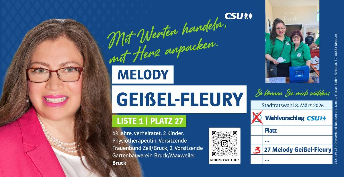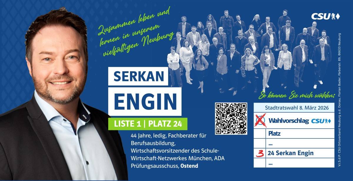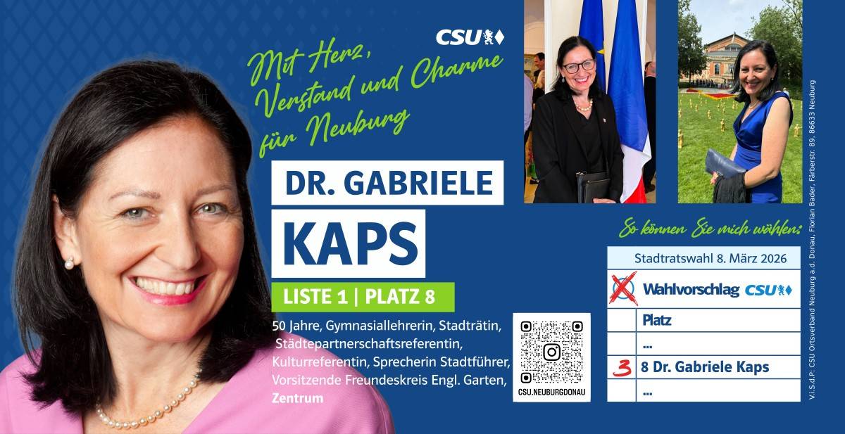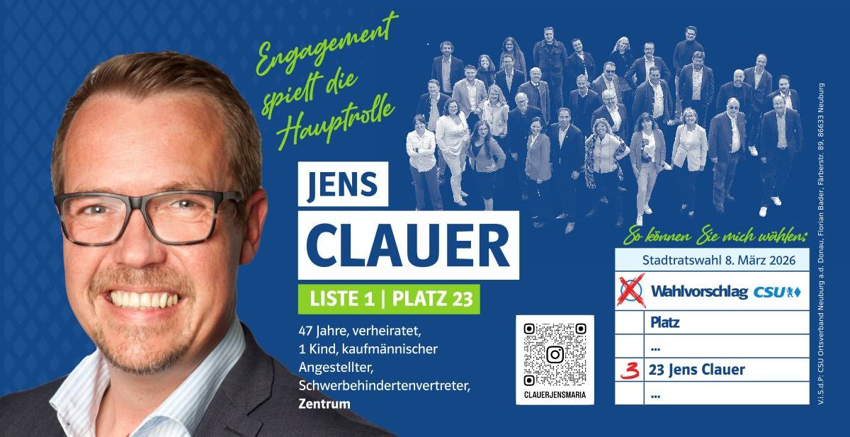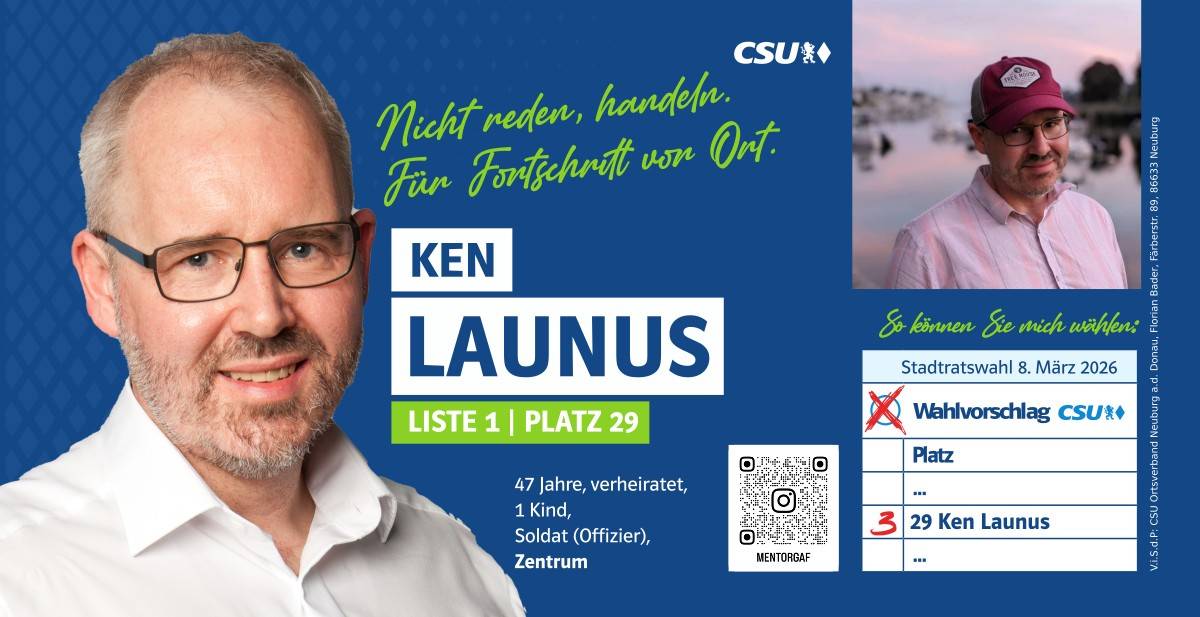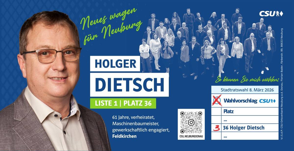 Ehrlich, innovativ und offen für die Chancen der Zukunft – das ist mein persönlicher Weg. Und diesen möchte ich mit allen Neuburgerinnen und Neuburgern gehen. Da gutes Miteinander beim Zuhören beginnt, biete ich Ihnen immer ein offenes Ohr an. Lassen Sie uns sprechen!